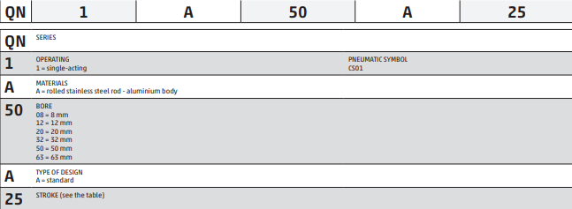 QN1A63A25 Siłownik pneumatyczny krótkoskokowy (krótkoskokowy, niemagnetyczny) Ø63 Skok 25 pojedynczego działania (sprężyna powrotna), niemagnetyczny Seria QN Camozzi